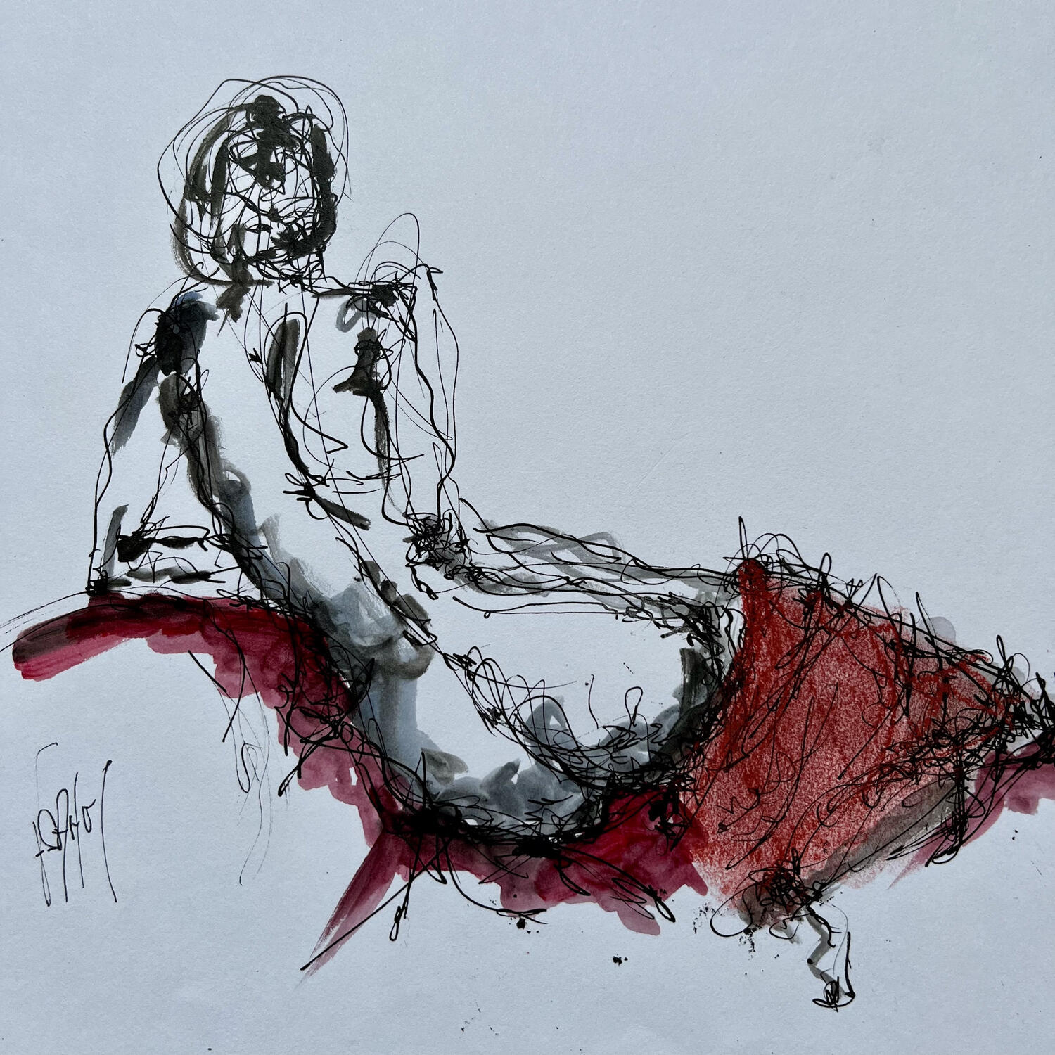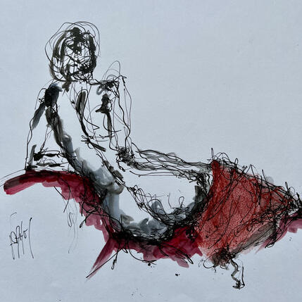 L'artiste a utilisé les techniques , Encre et aquarellepour créer cette peinture petit format sur Papier de style Figuratif sur les thèmes Minimaliste, Nu.