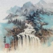 Peinture Waterfall  par Yu Huan Huan | Tableau Figuratif Paysages Nature Aquarelle Encre