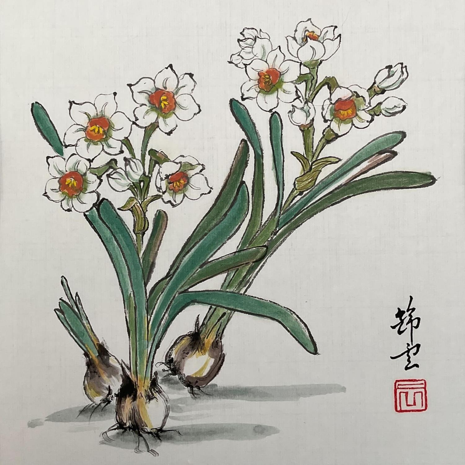 Cette oeuvre d'art contemporain unique et originale "Narcisses blanches" a été réalisée par l'artiste contemporain Tayun. L'artiste a utilisé différentes techniques pour créer cette peinture petit format sur papier de style Figuratif.