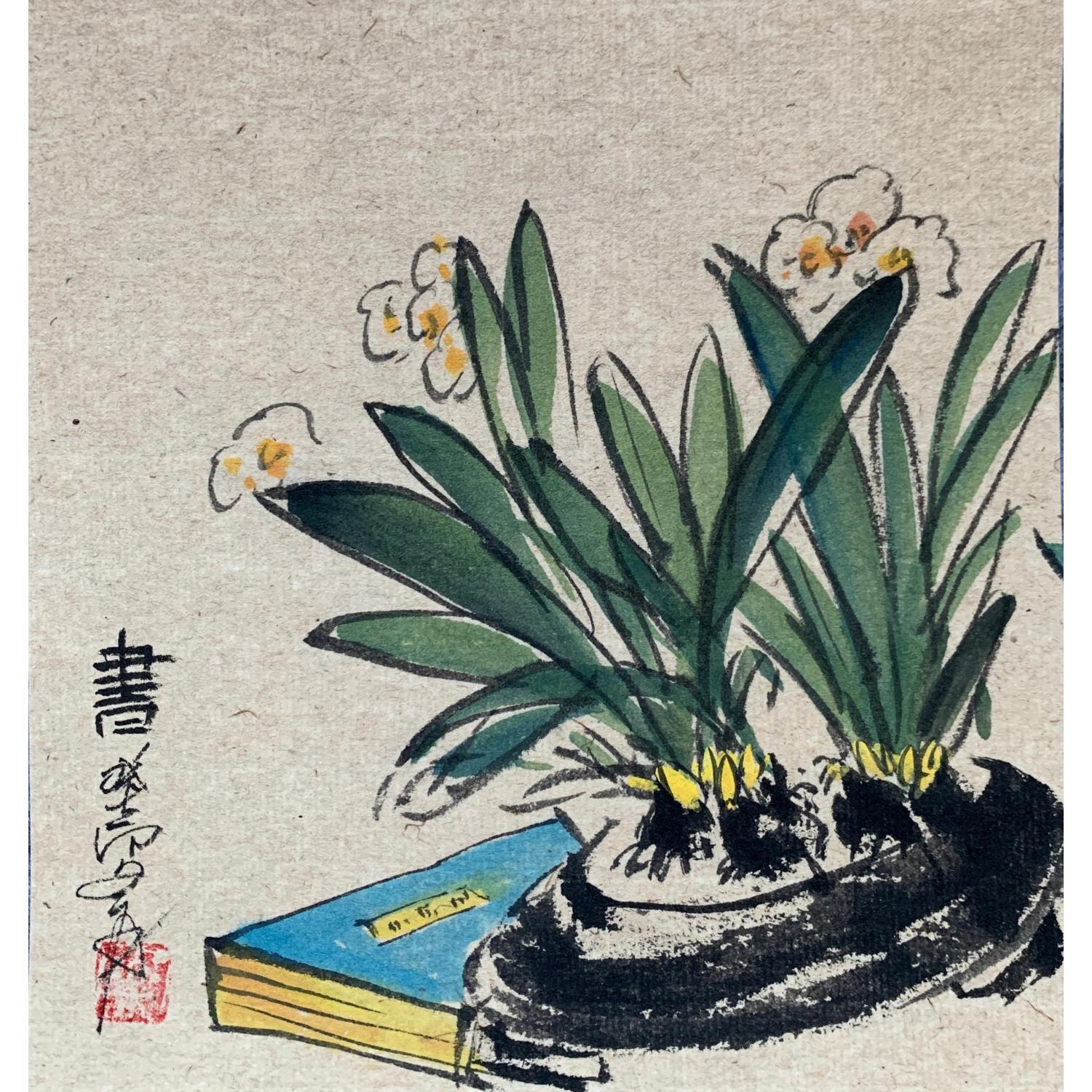 L'artiste a utilisé les techniques Aquarelle, Encre pour créer cette peinture petit format sur Papier de style Figuratif sur le thème Natures mortes.