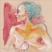 Alice de profilPeinture Alice de profil par Brunel Sébastien | Tableau Figuratif Nu Aquarelle