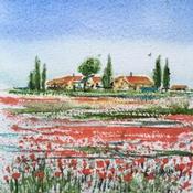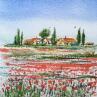 L'artiste a utilisé la technique Aquarelle pour créer cette peinture petit format sur Papier de style Figuratif sur le thème provençal