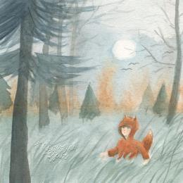 La peintre a utilisé l'Aquarelle pour réaliser cette illustration petit format sur papier. De style Figuratif, elle représente un enfant déguisé en renard, qui se promène sous la pleine lune, dans un décor de forêt de sapins verts.