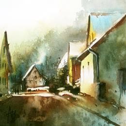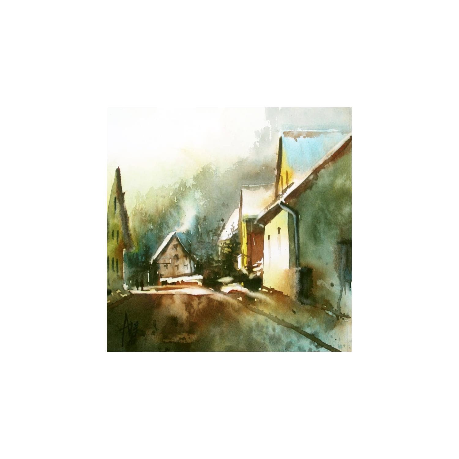 Allons nous mettre au chaudPeinture Allons nous mettre au chaud par Abbatucci Violaine | Tableau Figuratif Paysages Aquarelle