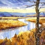 Peinture River par Volynskih Mariya  | Tableau Figuratif Paysages Nature Aquarelle