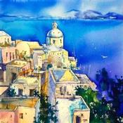 L'artiste a utilisé la technique Aquarelle pour créer cette peinture petit format sur Papier de style Figuratif sur les thèmes Paysages, Urbain, Marine.