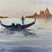 Peinture Black Gondola par Jones Henry | Tableau Figuratif Scènes de vie Aquarelle