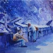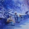 L'artiste a utilisé la technique Aquarelle pour créer cette peinture petit format sur papier de style Figuratif sur le thème scènes de vie.