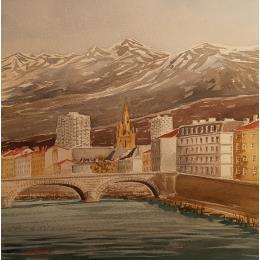 L'artiste a utilisé la technique Aquarelle pour créer cette peinture petit format sur Papier de style Figuratif sur le thème Urbain.