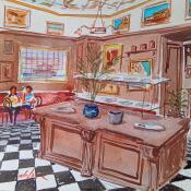 L'artiste a utilisé la technique Aquarelle pour créer cette peinture petit format sur Papier de style Figuratif sur le thème Urbain.