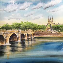Angers au fil de l'eau et de l'histoirePeinture Angers au fil de l'eau et de l'histoire par Hoffmann Elisabeth | Tableau Figuratif Urbain Aquarelle