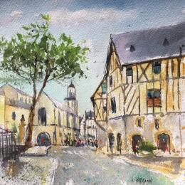 Angers doutre quartier médiévalPeinture Angers doutre quartier médiéval par Hoffmann Elisabeth | Tableau Figuratif Urbain Aquarelle