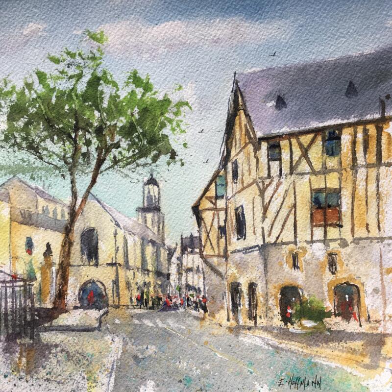 Peinture Angers doutre quartier médiéval par Hoffmann Elisabeth | Tableau Figuratif Urbain Aquarelle