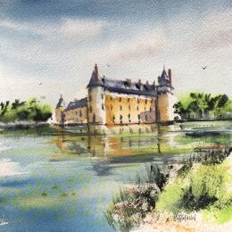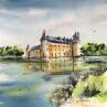 Anjou château du plessis-bourréPeinture Anjou château du plessis-bourré par Hoffmann Elisabeth | Tableau Figuratif Urbain Aquarelle
