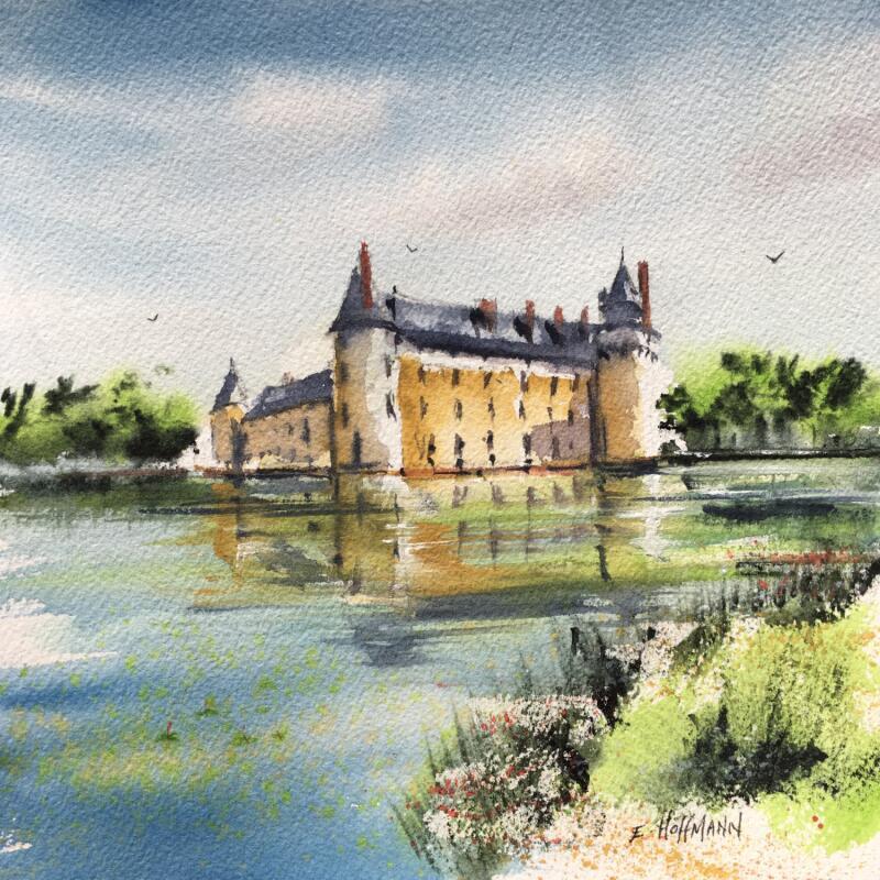 Peinture Anjou château du plessis-bourré par Hoffmann Elisabeth | Tableau Figuratif Urbain Aquarelle