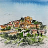 Peinture Eze suspendue par Hoffmann Elisabeth | Tableau Figuratif Urbain Aquarelle