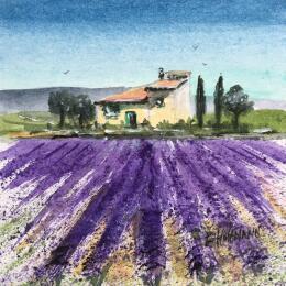 Peinture Lavande provençale par Hoffmann Elisabeth | Tableau Figuratif Urbain Aquarelle
