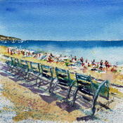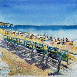 Cette oeuvre d'art contemporain unique et originale "Nice chaises bleues et souffle marin " a été réalisée par l'artiste contemporain Hoffmann Elisabeth.