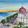 Peinture Nice Negresco ensoleillé par Hoffmann Elisabeth | Tableau Figuratif Urbain Aquarelle