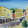 Peinture Nice Saleya en fleurs  par Hoffmann Elisabeth | Tableau Figuratif Urbain Aquarelle