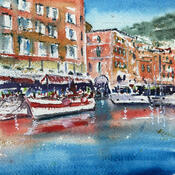 Cette oeuvre d'art contemporain unique et originale "Villefranche-sur-mer reflets du port" a été réalisée par l'artiste contemporain Hoffmann Elisabeth.