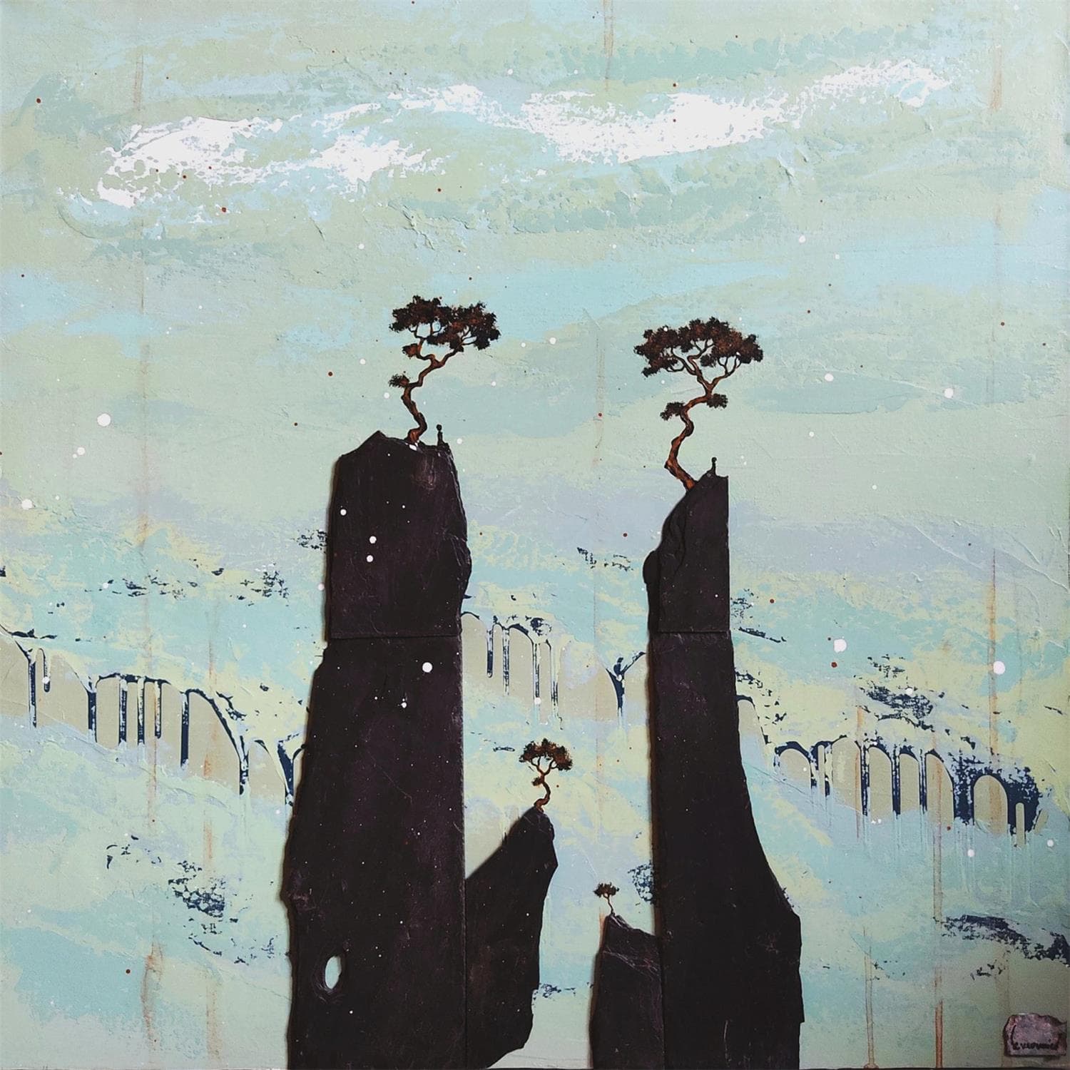 Peinture 2347 Black roc with a blue sky par Lemonnier  | Tableau Figuratif Paysages