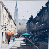 L'artiste a utilisé la technique Aquarelle pour créer cette peinture petit format sur Papier de style Figuratif sur le thème Urbain.