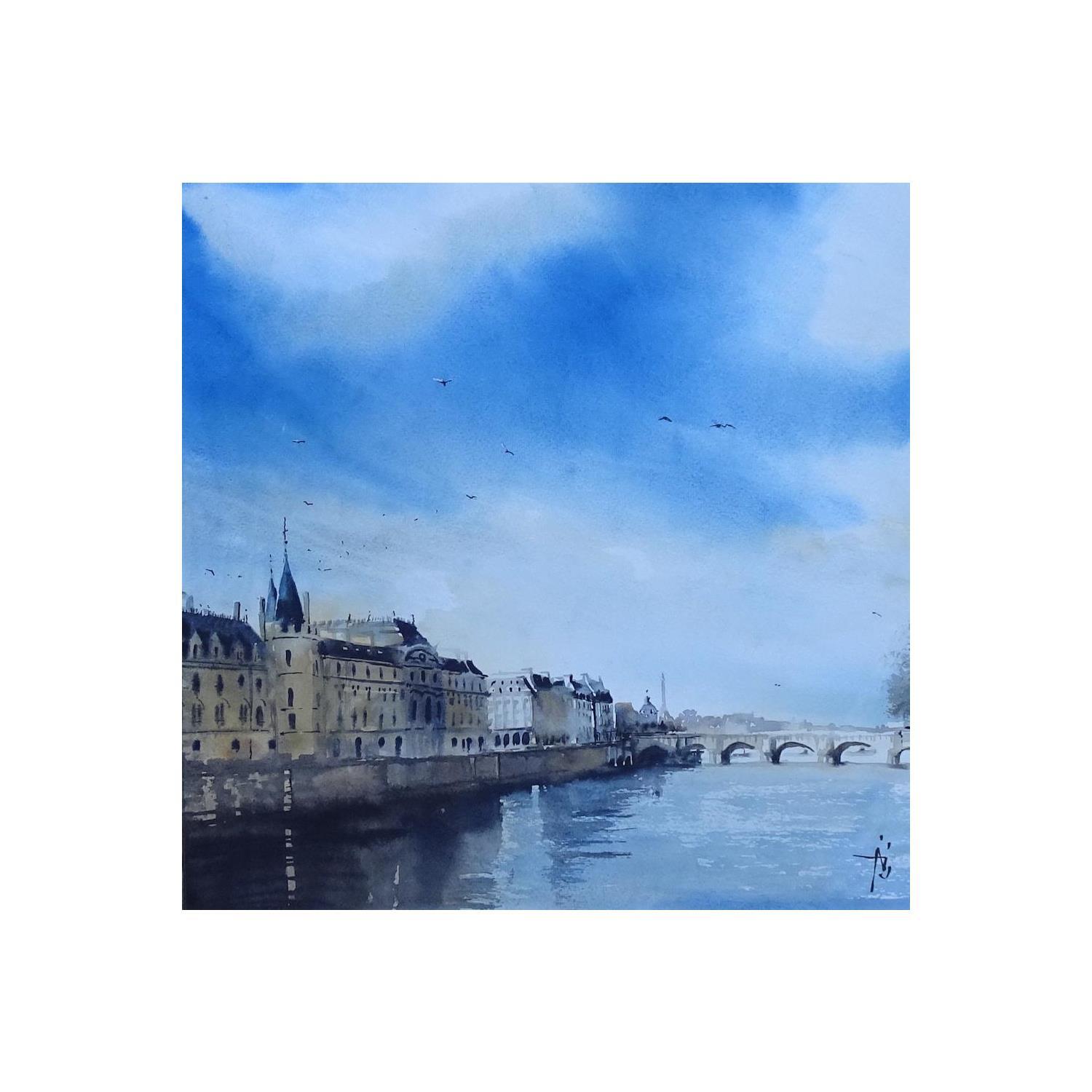 Cette oeuvre d'art contemporain unique et originale "Vers le quai de l'horloge" a été réalisée par l'artiste contemporain Abbatucci Violaine.