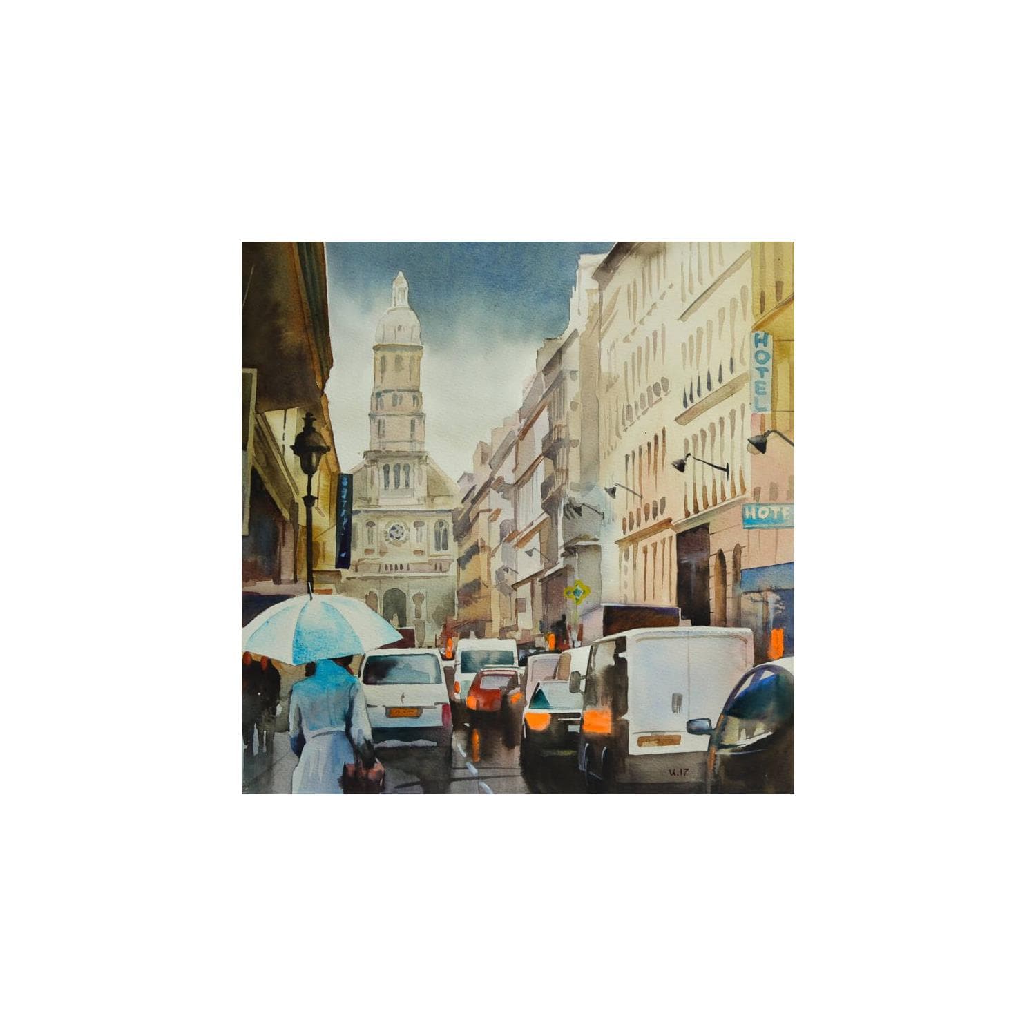 Peinture Paris 5 par Khodakivskyi Vasily | Tableau Figuratif Urbain Aquarelle
