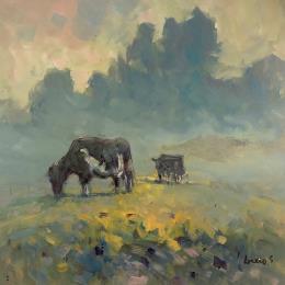 Cette oeuvre d'art contemporain unique et originale "Aussi près des vaches" a été réalisée par l'artiste contemporain Greco Salvatore.