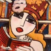 L'artiste a utilisé les techniques Bois, Acrylique pour créer cette peinture petit format sur Bois de style Figuratif sur les thèmes Portraits, Scènes de vie.