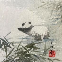 Peinture Panda par Yu Huan Huan | Tableau Figuratif Animaux Encre