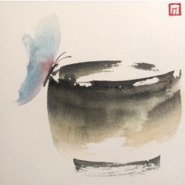 L'artiste a utilisé la technique Encre pour créer cette peinture petit format sur Papier de style Figuratif sur le thème Minimaliste.