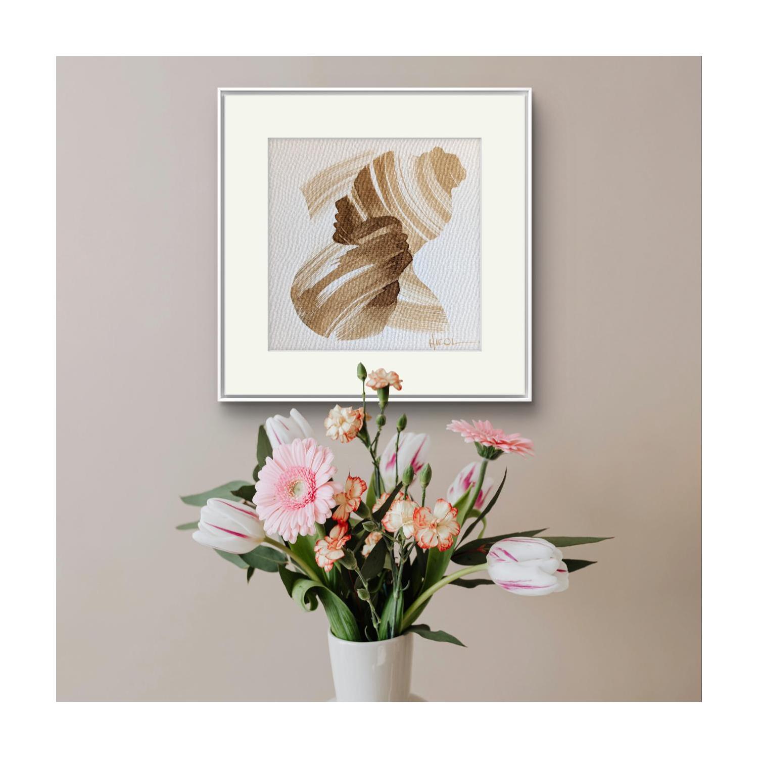 L'artiste a utilisé la technique Encre pour créer cette peinture petit format sur Papier de style Figuratif sur les thèmes Minimaliste, Noir & blanc, Portraits.