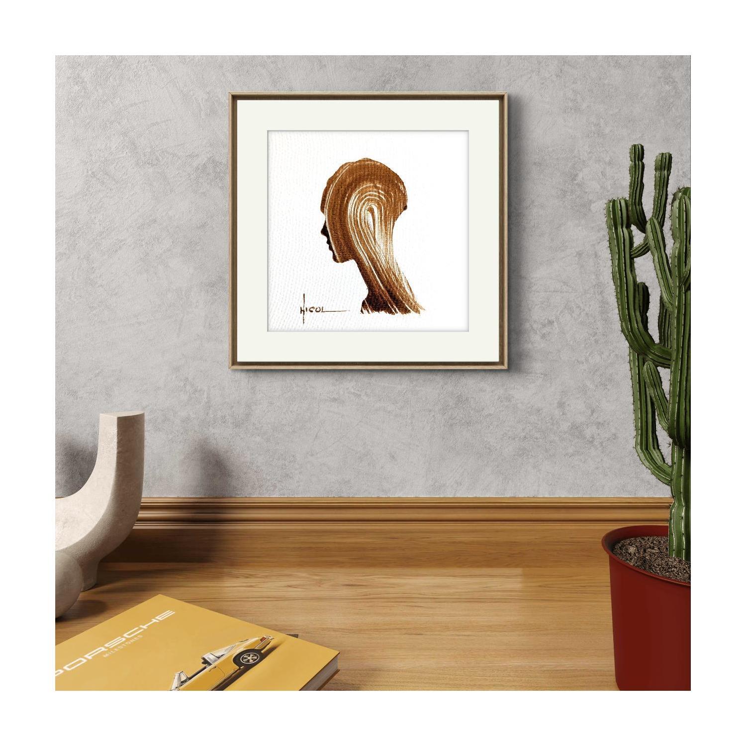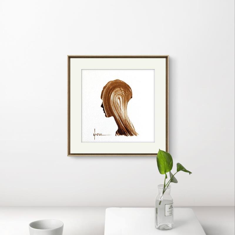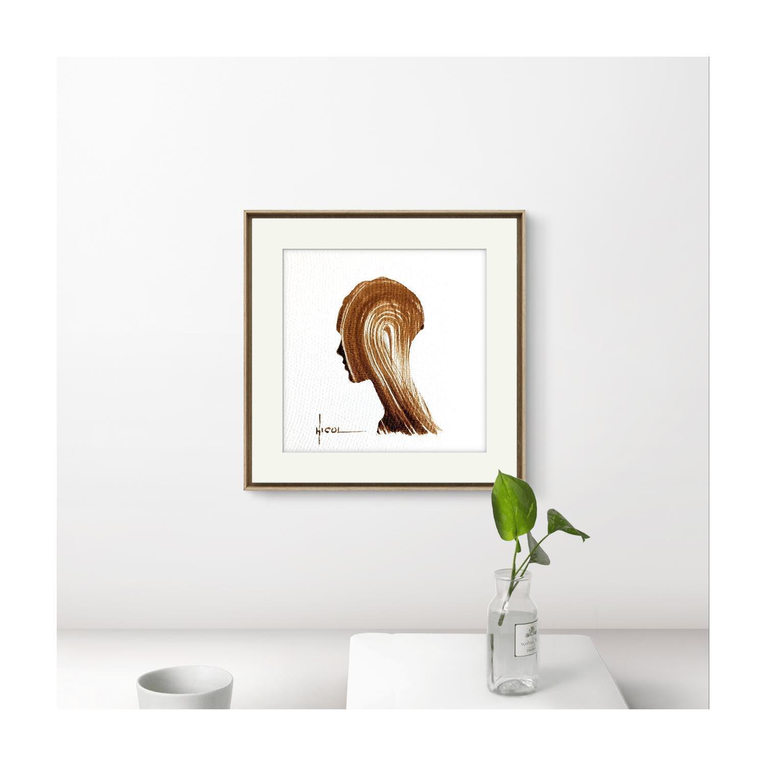 L'artiste a utilisé la technique Encre pour créer cette peinture petit format sur Papier de style Figuratif sur les thèmes Minimaliste, Noir & blanc, Portraits.