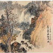 Cette oeuvre d'art contemporain unique et originale "High mountains and waterfall " a été réalisée par l'artiste contemporain Yu Huan Huan.