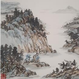 Lake MountainsPeinture Lake Mountains par Yu Huan Huan | Tableau Figuratif Nature Encre