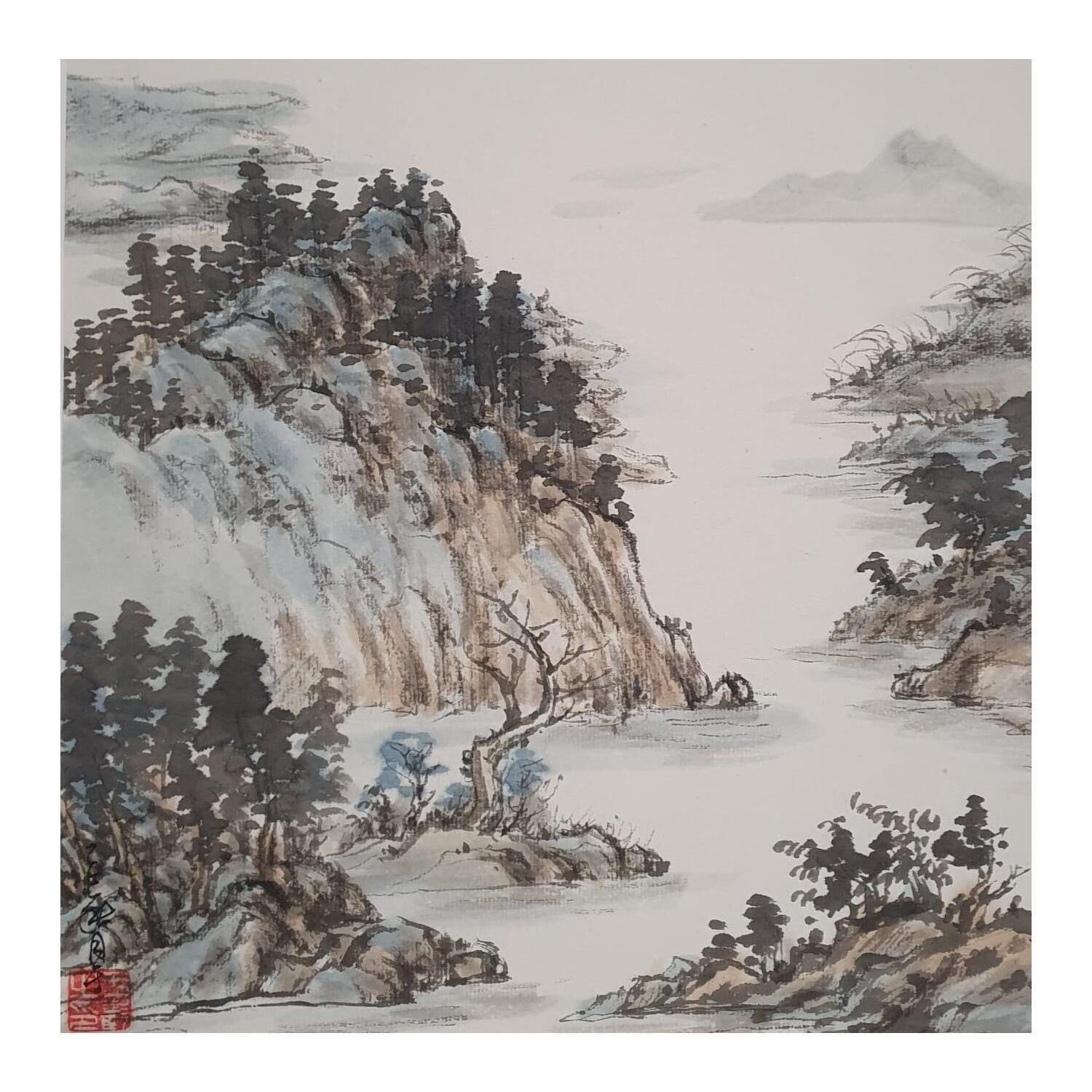 Peinture Lake Mountains par Yu Huan Huan | Tableau Figuratif Nature Encre