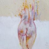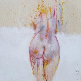 Cette acrylique sur toile est une véritable ode à la délicatesse et à la subtilité. Les lignes fines et les touches de couleurs douces créent une silhouette éthérée, presque spectrale, qui semble flotter dans un espace intemporel. Les éclaboussures de teintes chaudes et froides ajoutent une dimension dynamique et poétique à la composition, évoquant un mouvement gracieux et une légèreté aérienne. C'est une œuvre qui invite à la rêverie et à la contemplation, une véritable célébration de la beauté éphémère.