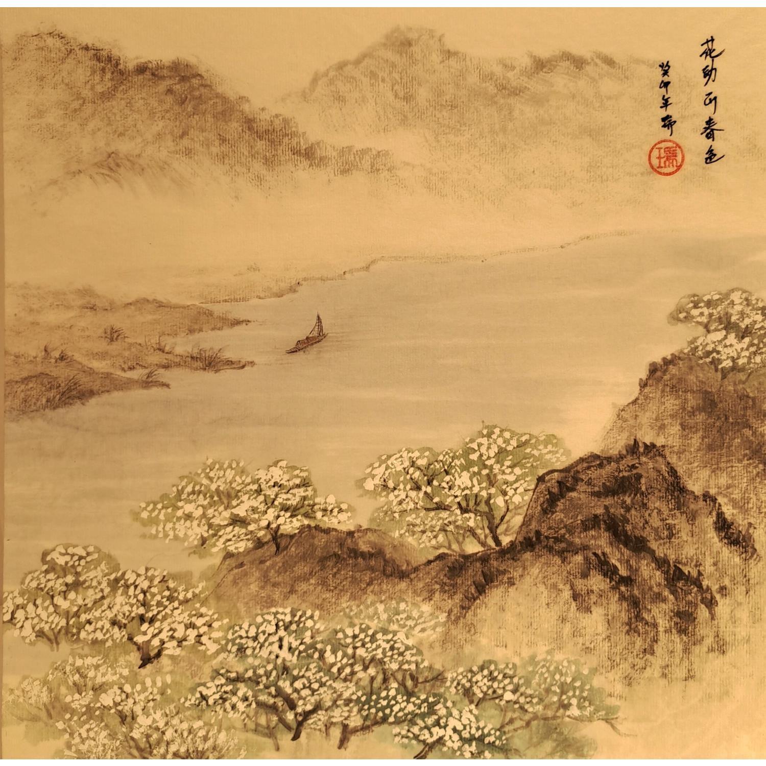 L'artiste a utilisé les techniques Encre, Aquarelle pour créer cette peinture petit format de style Figuratif sur le thème Paysages.