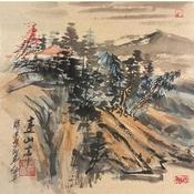 L'artiste a utilisé la technique Encre pour créer cette peinture petit format sur Papier de style Figuratif sur les thèmes Paysages, Nature.