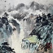 WaterfallPeinture Waterfall par Yu Huan Huan | Tableau Figuratif Paysages Encre