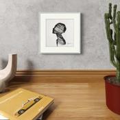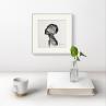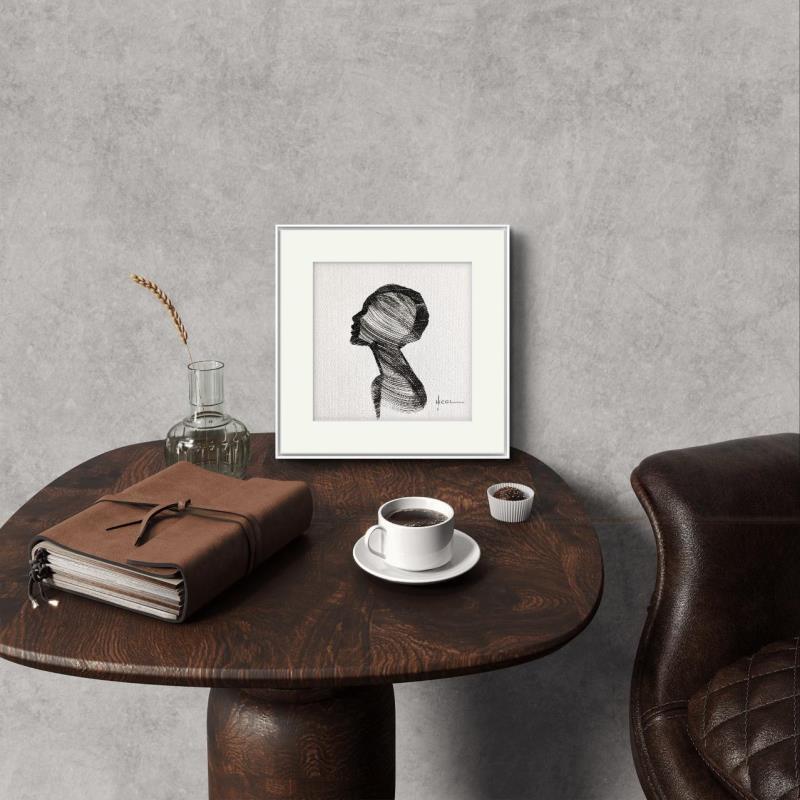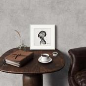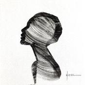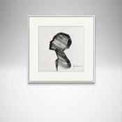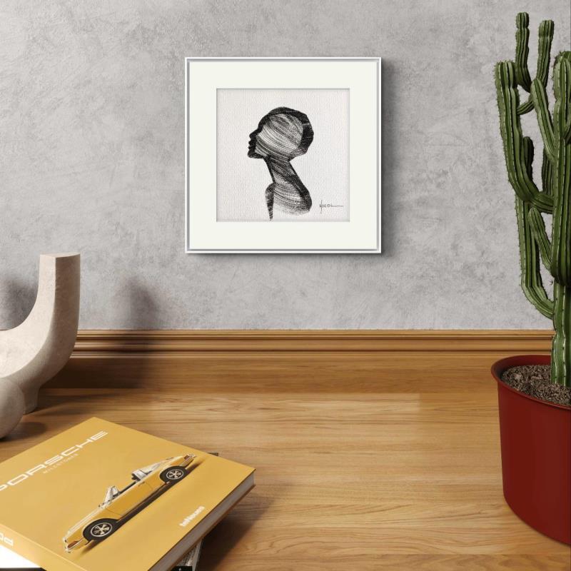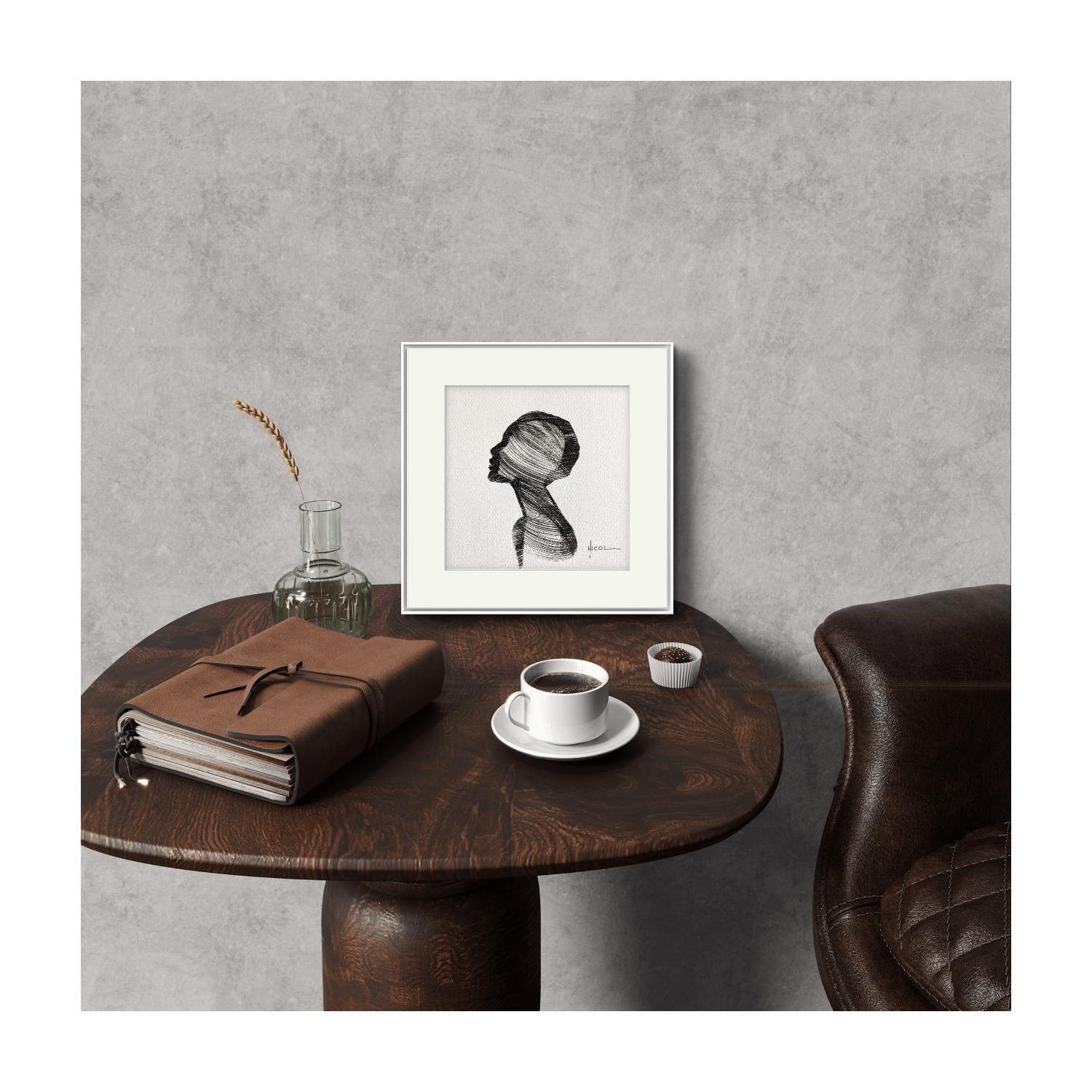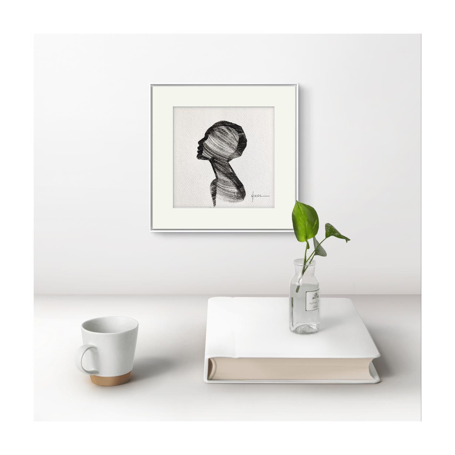 L'artiste a utilisé la technique Encre pour créer cette peinture petit format sur Papier de style Figuratif sur les thèmes Portraits, Minimaliste, Noir & blanc.