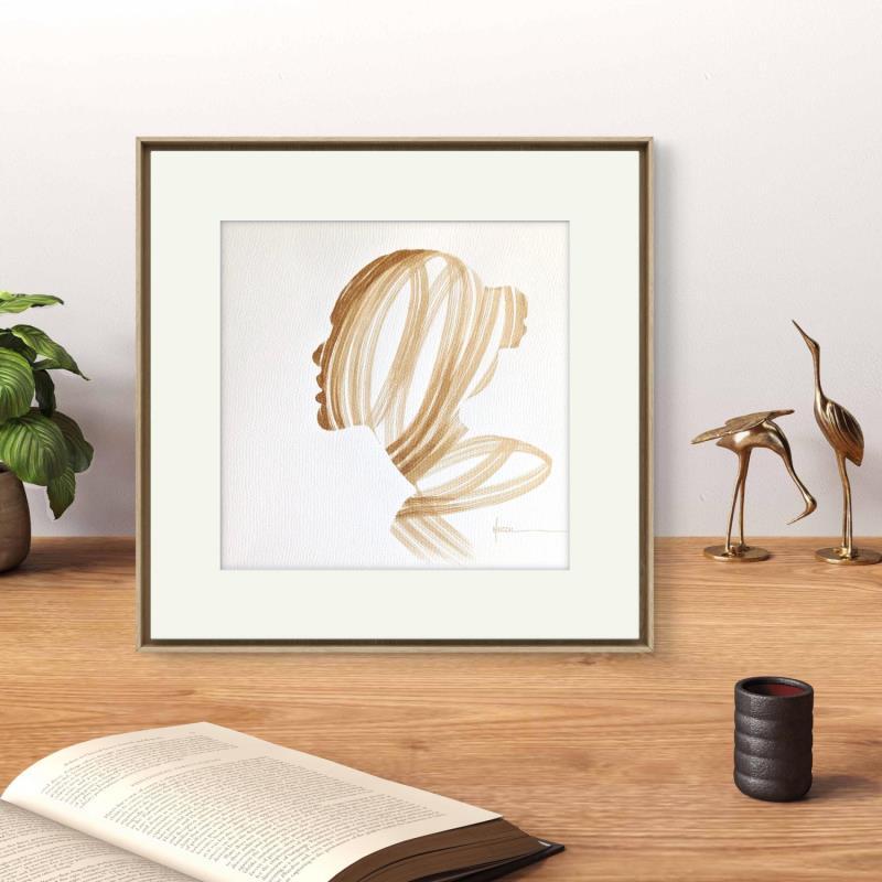 L'artiste a utilisé les techniques Encre, Papier pour créer cette peinture petit format sur Papier de style Figuratif sur les thèmes Portraits, Minimaliste, Noir & blanc.