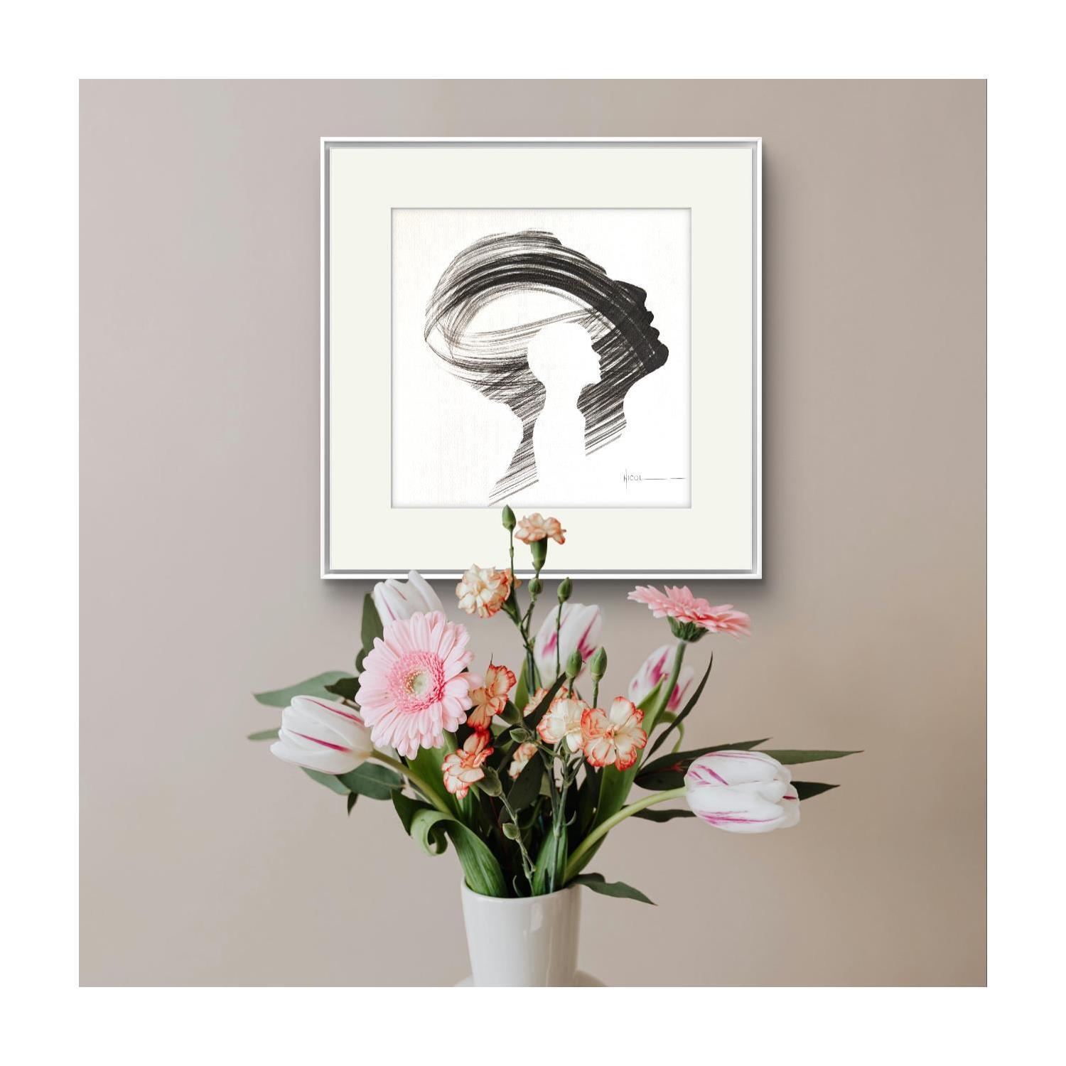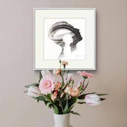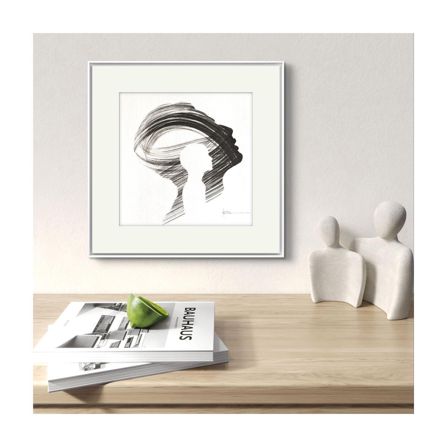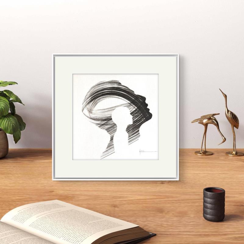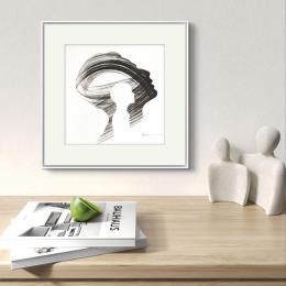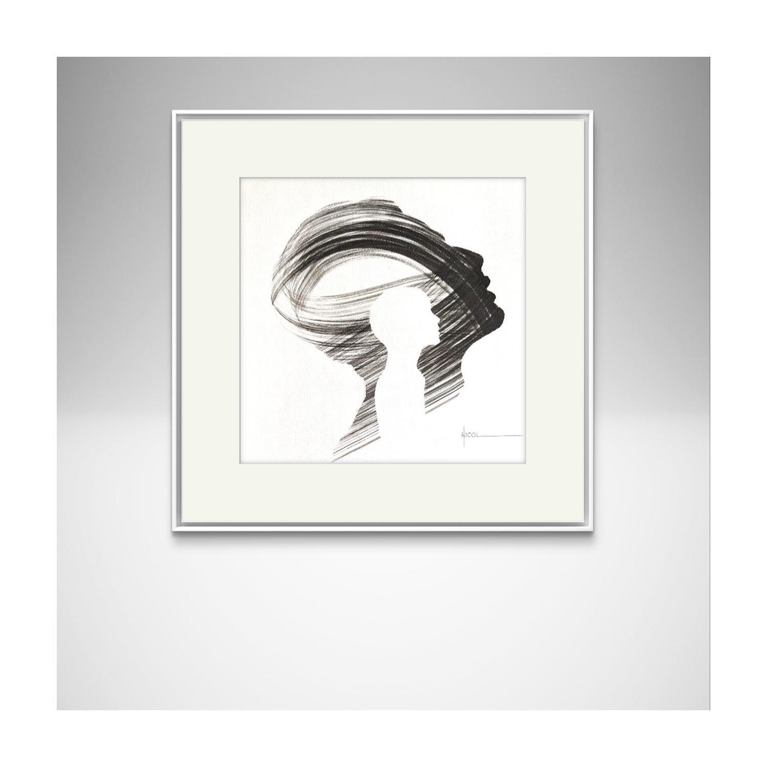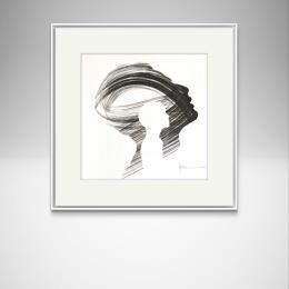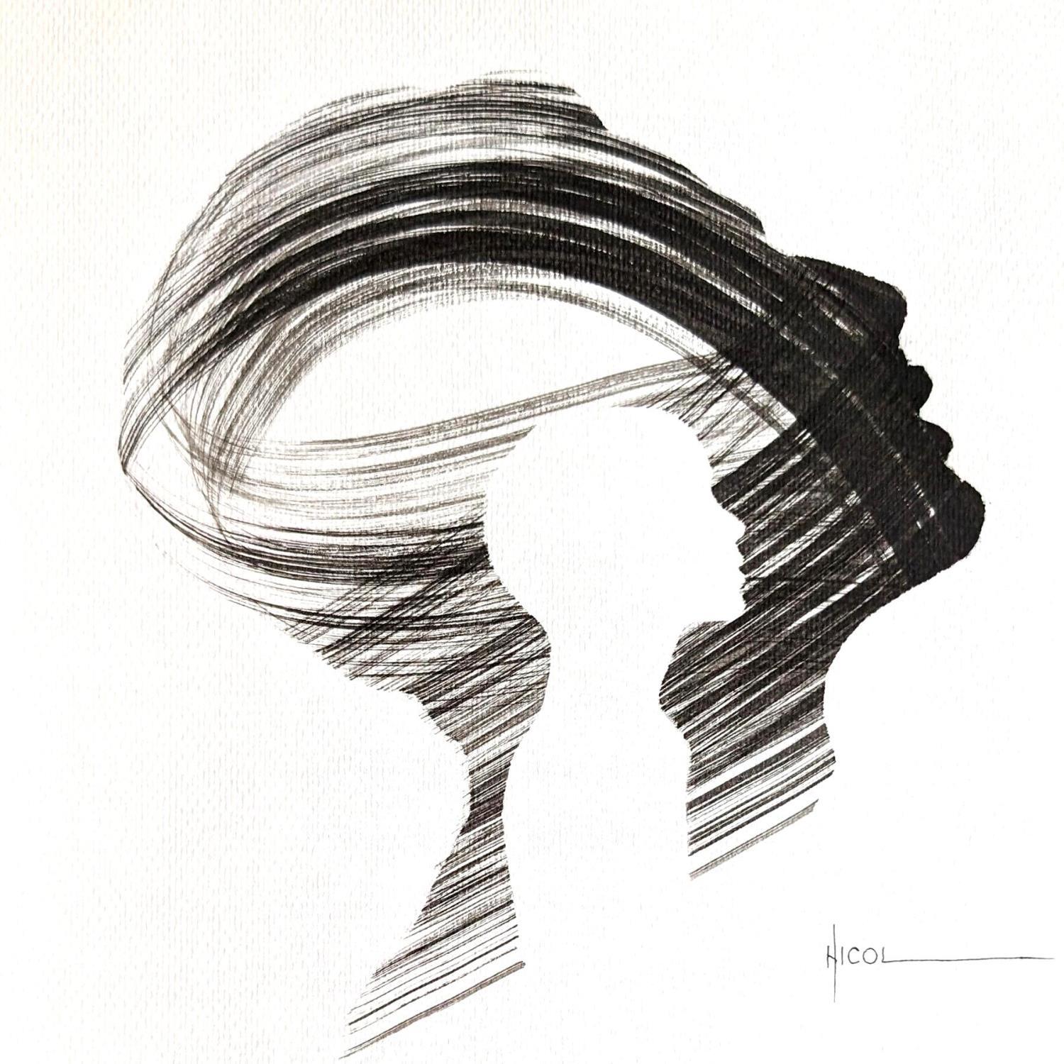 L'artiste a utilisé la technique Encre pour créer cette peinture petit format sur Papier de style Figuratif sur les thèmes Portraits, Minimaliste, Noir & blanc.