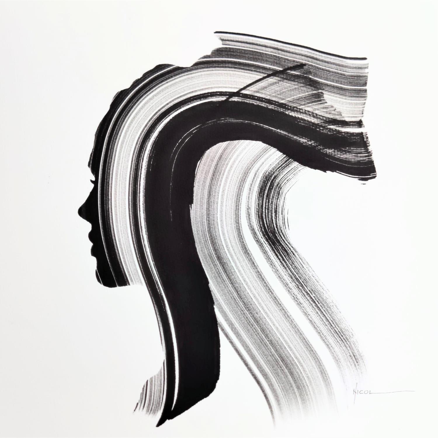 Cette œuvre d'art contemporaine unique et originale intitulée "Time LXIX" sur le thème du portrait a été créée par l'artiste contemporain NICOL . L'artiste a utilisé de l'encre sur papier pour créer cette peinture figurative de petit format.