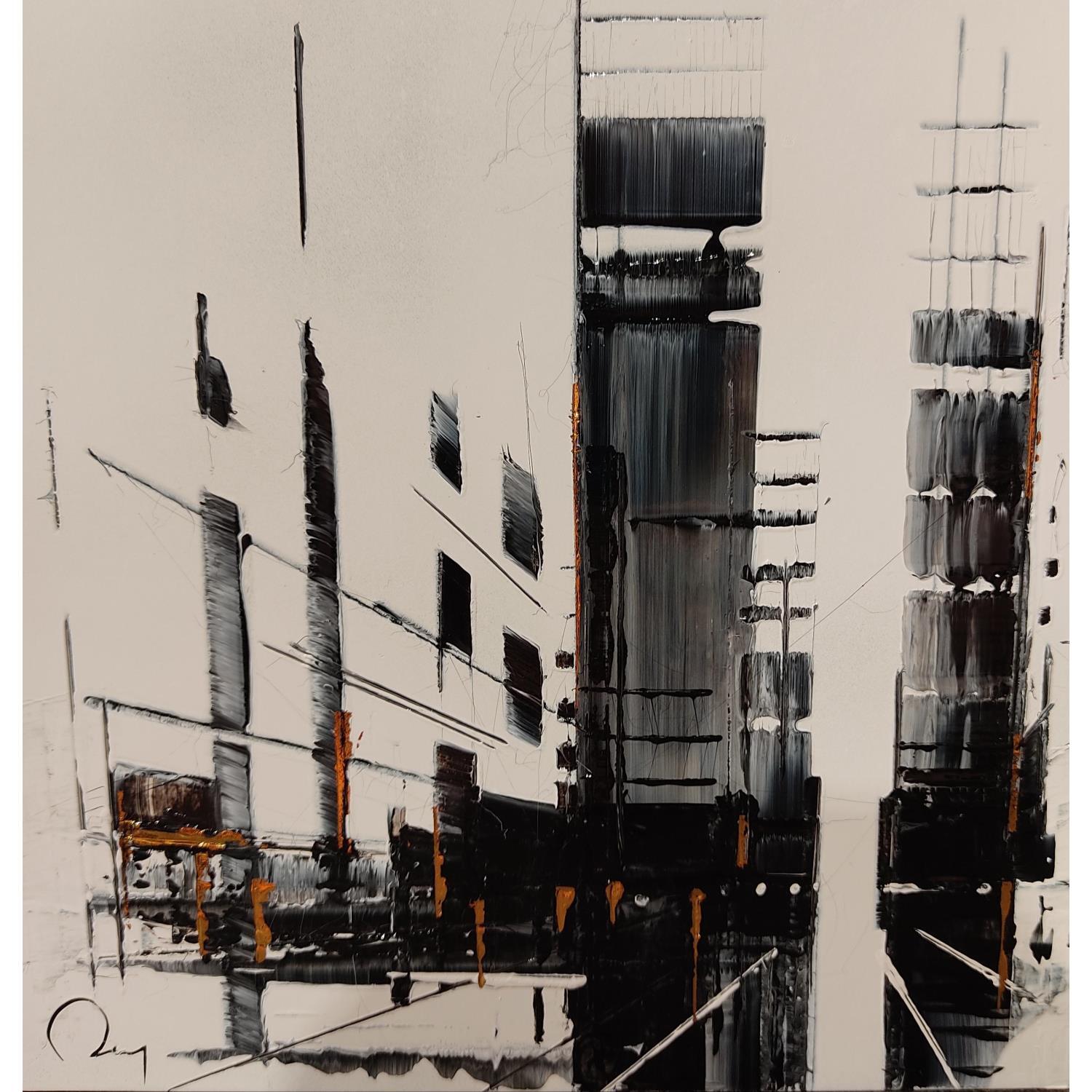 Bien qu'étant achromatopsique (absence de perception des couleurs), Julien Rey nous fait voyager à travers ses toiles aux paysages urbains. L'histoire de Julien Rey commence comme toutes les belles histoires : par un rêve impossible. Achromatopsique, l'artiste ne voit qu'en noir et blanc. Pourtant, cette maladie ne l'empêche pas de voyager aux confins de la Birmanie, de changer de vie (il y devient moine bouddhiste) ou de se lancer dans l'art. De son voyage en Birmanie, il ramène une parfaite maîtrise de la feuille d'or, élément caractéristique de son travail. Sa technique à base de laque travaillée au couteau et d'incrustations de feuille d'or place la lumière au centre de ses œuvres. Marqué par la philosophie zen, il réalise des compositions minimales qui apparaissent comme des instants suspendus, des pauses poétiques.