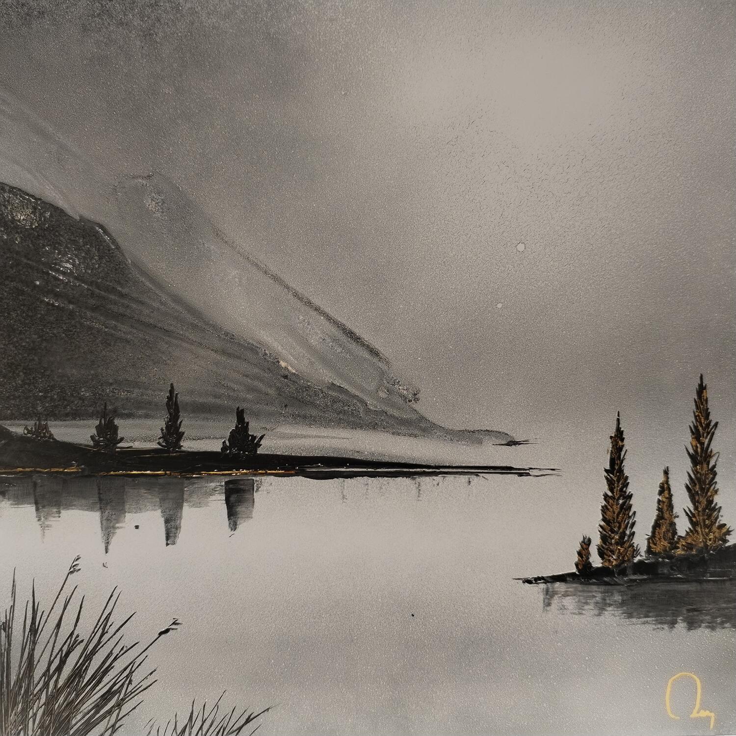 Bien qu'étant achromatopsique (absence de perception des couleurs), Julien Rey nous fait voyager à travers ses toiles aux paysages urbains. L'histoire de Julien Rey commence comme toutes les belles histoires : par un rêve impossible. Achromatopsique, l'artiste ne voit qu'en noir et blanc. Pourtant, cette maladie ne l'empêche pas de voyager aux confins de la Birmanie, de changer de vie (il y devient moine bouddhiste) ou de se lancer dans l'art. De son voyage en Birmanie, il ramène une parfaite maîtrise de la feuille d'or, élément caractéristique de son travail. Sa technique à base de laque travaillée au couteau et d'incrustations de feuille d'or place la lumière au centre de ses œuvres. Marqué par la philosophie zen, il réalise des compositions minimales qui apparaissent comme des instants suspendus, des pauses poétiques.