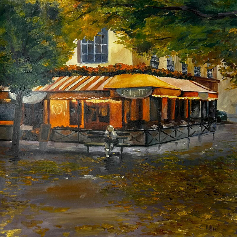 Cette oeuvre d'art contemporain unique et originale "L'automne au café " a été réalisée par l'artiste contemporain Piffard Cédric.