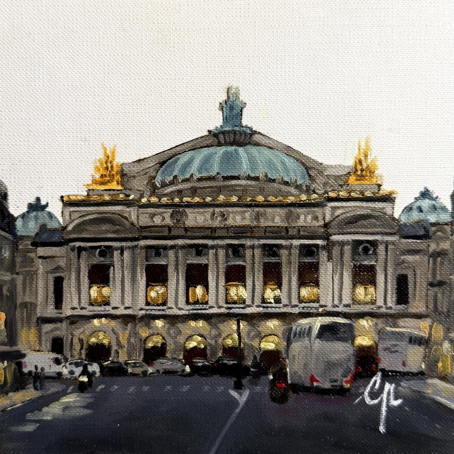 L'Opéra et la VillePeinture L'Opéra et la Ville par Poulain Clément | Tableau Figuratif Urbain Scènes de vie Architecture Huile